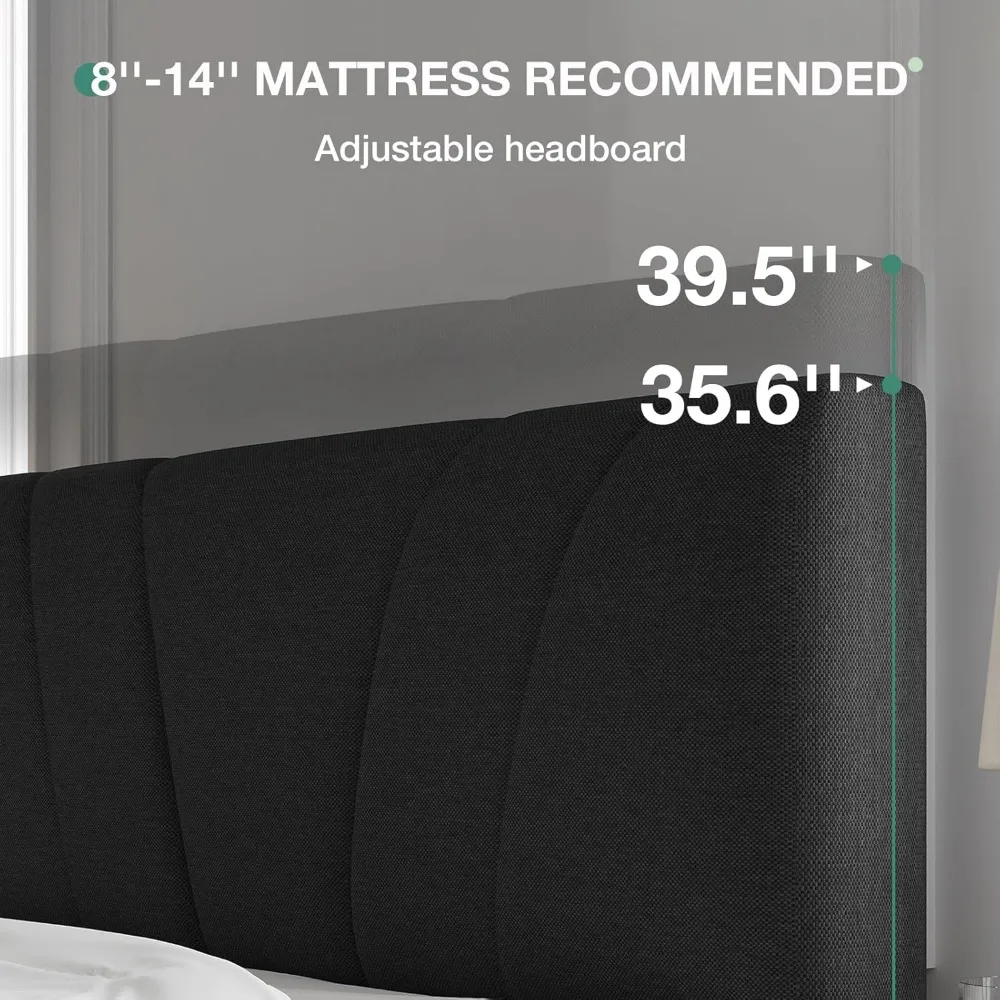 - 35.9"-39.6" Adjustable Height Headboard: Our king size bed frame features a 3.7 inch height-adjustable headboard (35.9"-39.6"), designed for mattresses 8-12 inches thick. Easily customize the height to match your mattress thickness while maintaining a tailored look for your bedroom setup.