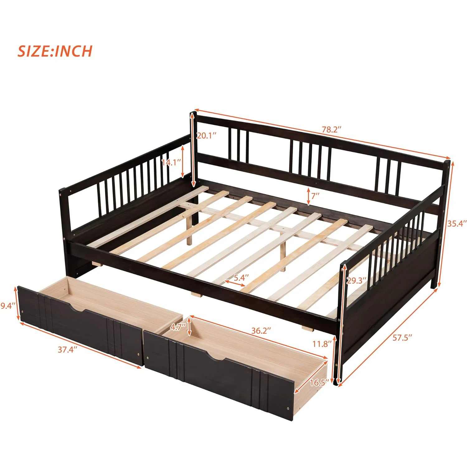 Full size: This full-length daybed measures 78.2" L x 57.5" W x 35.4" H.Mattress not included. Requires assembly; our straightforward instructions are enclosed.