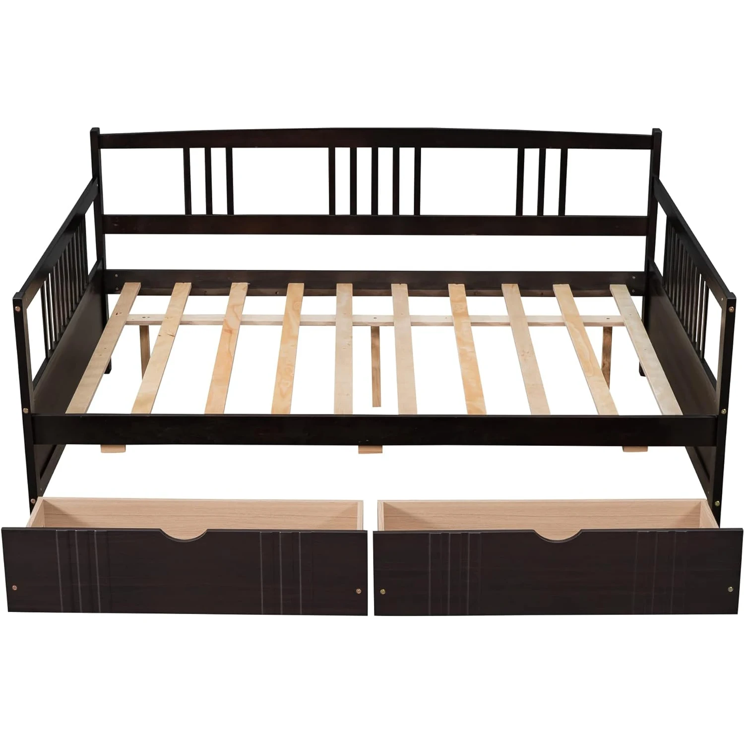 Space-efficient: This full-size daybed with dual drawers creates extra storage effortlessly. Ample for holding books and playthings, facilitating organized living.